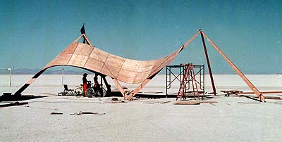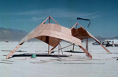 Each ply sheet overlapped it's neighbors by 3". The 4'x4' sheets were positioned like hugh tiles to repel water should it rain during the Burning Man event.
